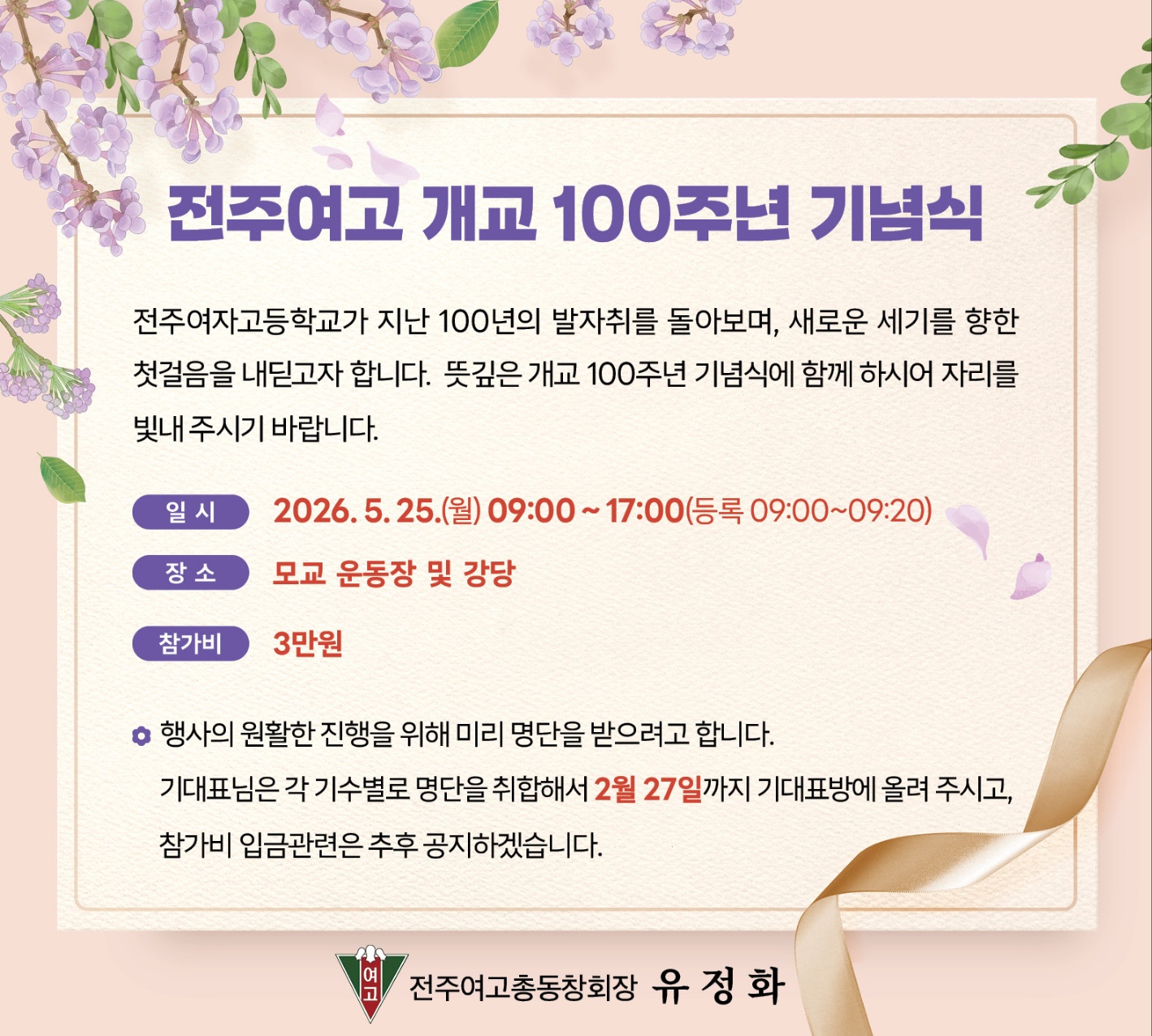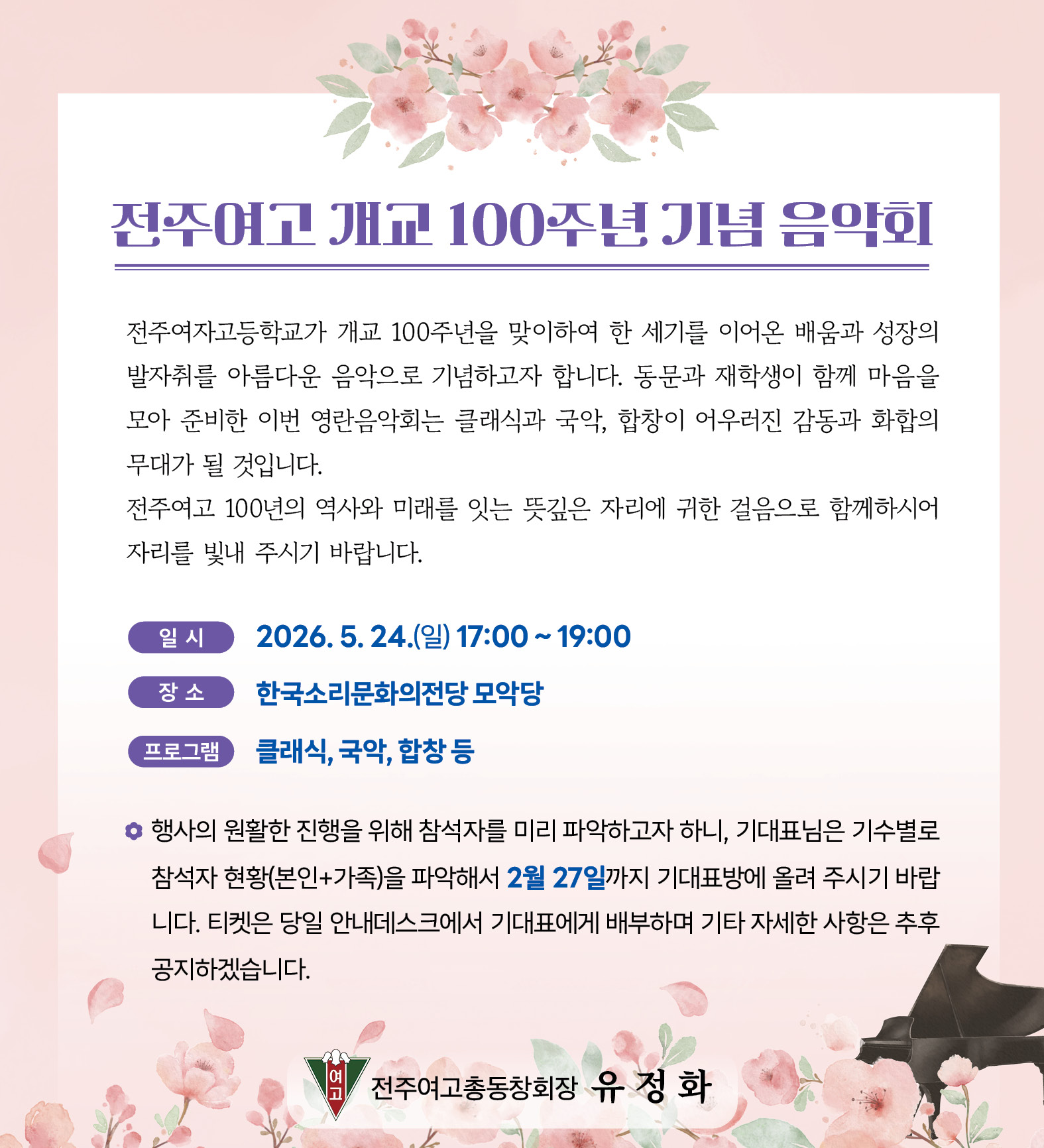 참가를 원하는 동문은 각 기수 기대표님에게 2월 27일까지 알려주시기 바랍니다.