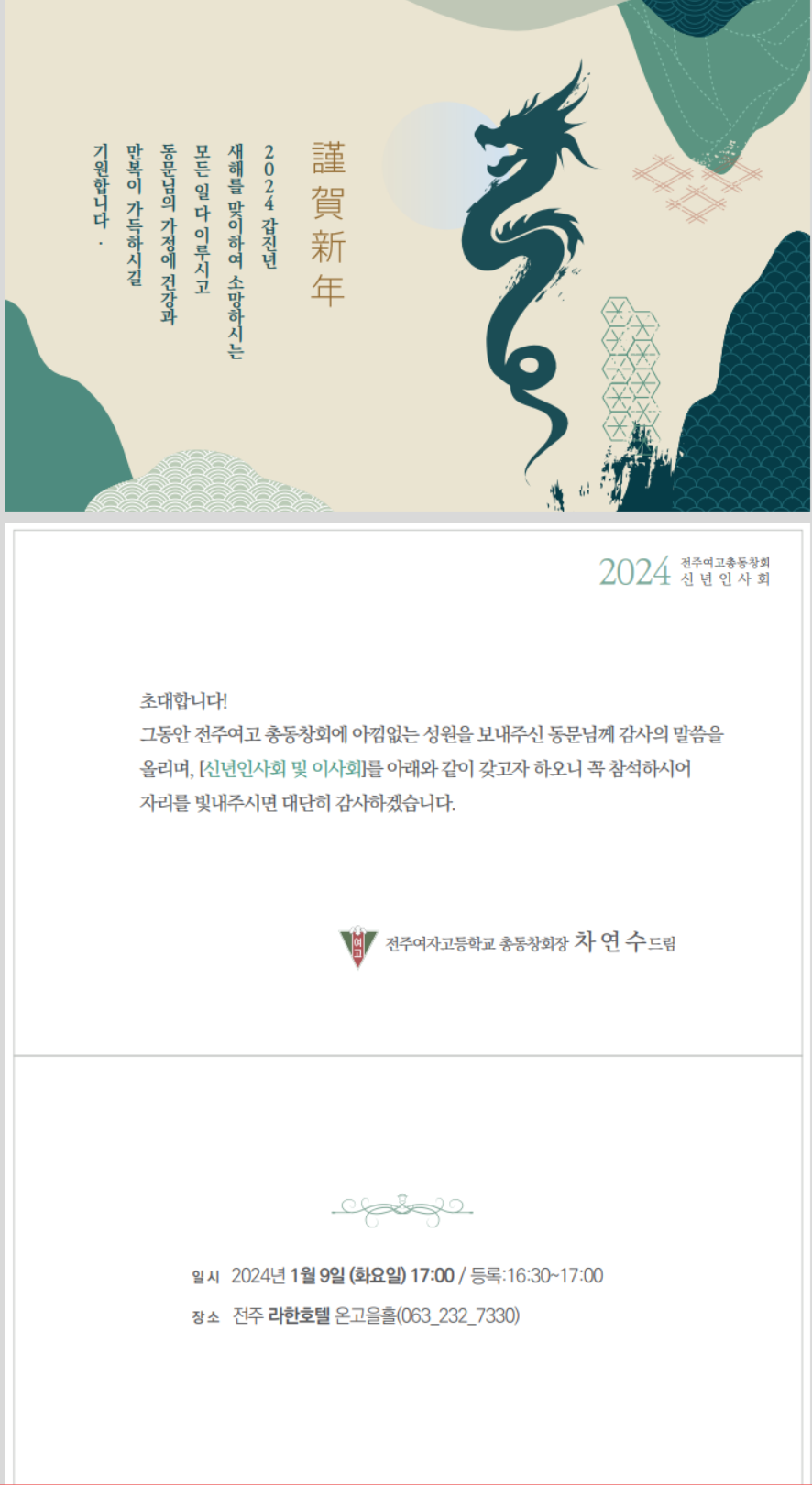 전주여자고등학교 총동창회 [신년인사회 및 이사회] 개최 안내