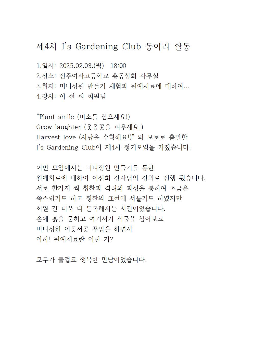 제4차 J's Gardening Club 정기모임(2025.2.3)